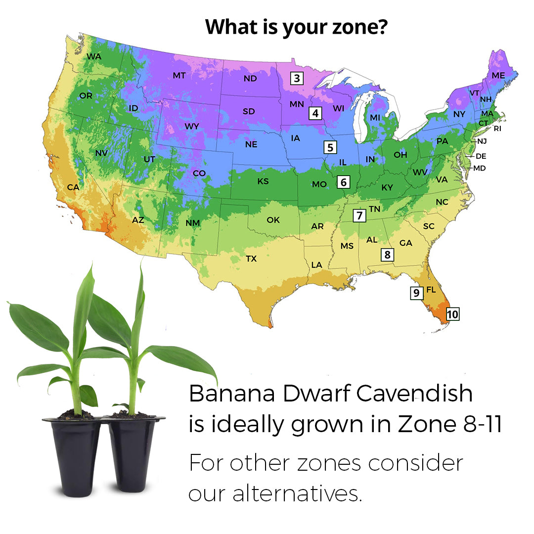 The Dwarf Cavendish banana is a short and hardy plant that produces large and sweet fruits. It has green leaves with purple or red spots when young, and yellow skin when ripe. It is a popular and easy-to-grow variety of banana that can be grown indoors or outdoors.