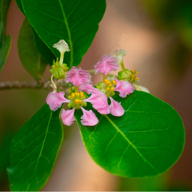 - Barbados Cherry trees are known for their beautiful pink flowers that bloom in the spring and produce edible cherries in the summer.